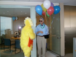 Me and a chicken my wife sent for my birthday in 2010 just before I left a prestigious job in a downtown Chicago high rise for a magazine job in the suburbs.